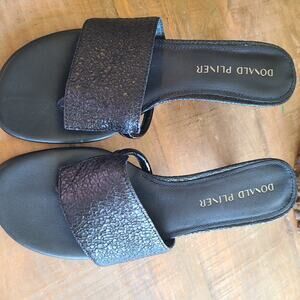 Donald Pliner NEW Vimm Pebbled Black Leather Slide Sandals Sz 7 M Short Heel NEW