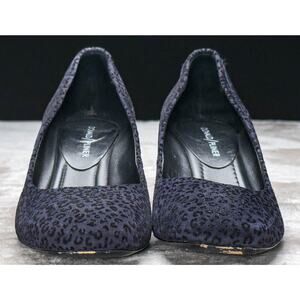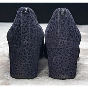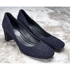 Donald Pliner Navy Suede Leopard Print Square Toe Block Heel Pumps Womens Size 7