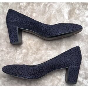 Donald Pliner Navy Suede Leopard Print Square Toe Block Heel Pumps Womens Size 7 Excellent condition - see pictures for wear