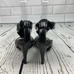 Vintage leather with antiqued, studs. Has an adjustable ankle strap with a buckle closure. Leather upper, lining and sole. Has a 1 inch floating platform and a 4 inch heel height. Size 6M. NWOB and NWOT