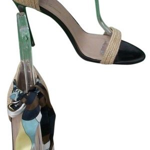 HIGH HEEL PUMP IS DETAILED WITH RAFFIA BRAID OVER THE TOES / VAMP STRAP