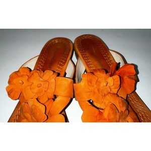 Donald Pliner Orange Suede Flower Sandals Size 8.5