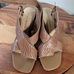 Donald Pliner Pasha Slingback Sandal Heels Croc Embossed Leather Size 7