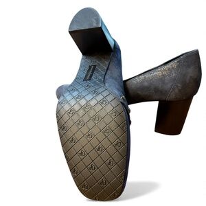 Step into polished style with these NWOT Donald Pliner Peggi loafers. The navy upper has a subtle iridescent sheen that shifts beautifully in the light. Silver stud detailing adds a modern, tailored edge. The 2.75" stacked heel offers stability and comfort while keeping the silhouette refined. A great choice for work, dinner, or elevating everyday looks.