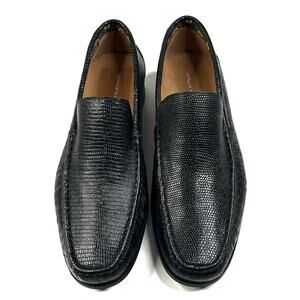 Donald Pliner Reuben 82 Black Lizard Embossed Leather Loafers Mens 10M New $295