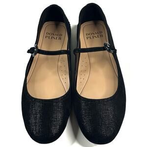 Donald Pliner Rumma Black Metallic Leather Mary Jane Flat Womens 10M New $188