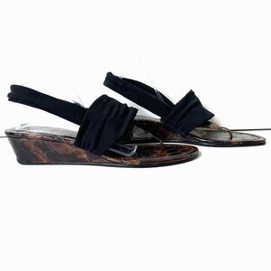 Donald J Pliner Sandals Women's Size 9M Sling Back Thong Fabric Stretch Black Brown Wedge