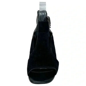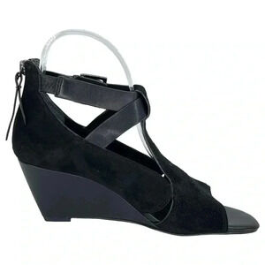 Donald Pliner Sila Wedge Sandals 7.5M Black Suede Leather Back Zipper