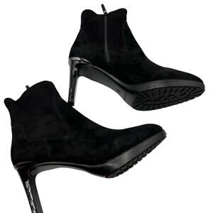 Donald Pliner Size 9 Italia Suede Boots Bootie Black 3" Stiletto Heel Zip Ankle