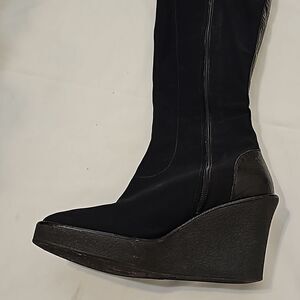 Donald Pliner Trike Tall Wedge Boots Size 8.5 Side Zip Black