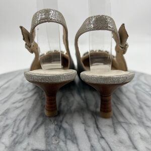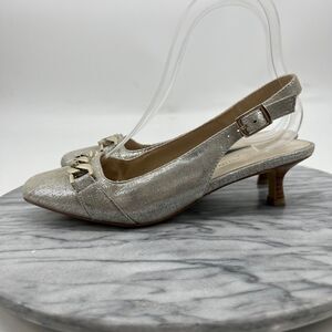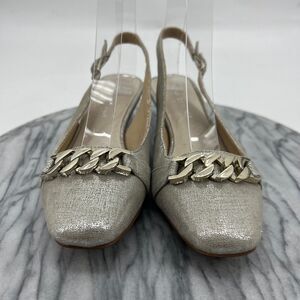 Donald Pliner Womens 6 Silver Metallic Chain Leather Slingback Kitten Pump