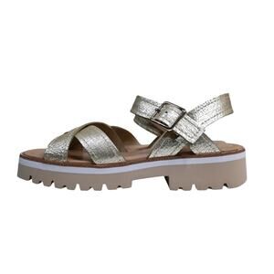 Step out in style with the PYPER sandal in pebbled metallic leather.