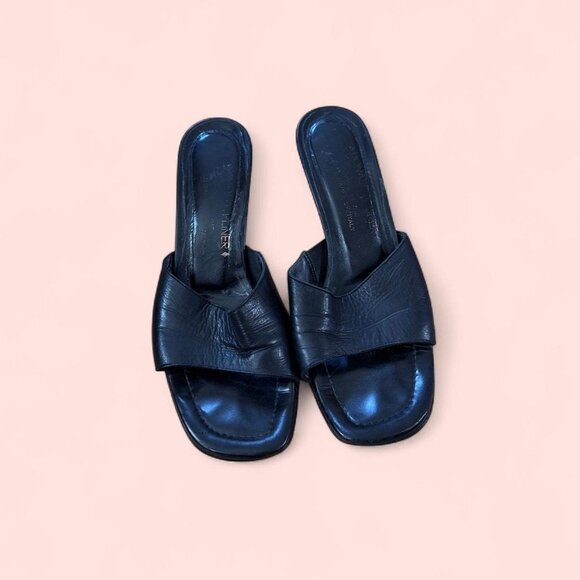 Black genuine leather 90s mules by Donald Pliner #grungevibes #leathermules