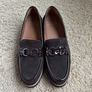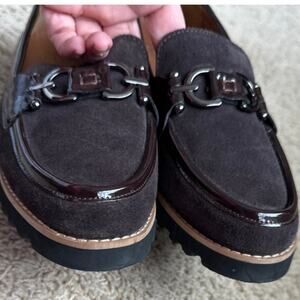 Donald Pliner Women's Clio Dark Brown Suede Patent Trim Loafers Size 7.5 M