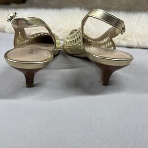 Donald Pliner Womens Shoes Size 7.5 Ike Slingback Kitten Heels Gold Pointy Toe