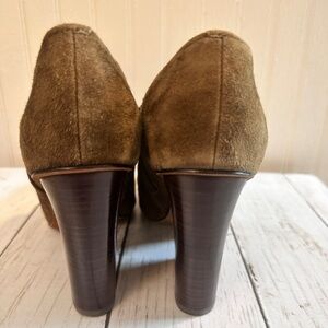 Great condition. Add a touch of sophistication to your wardrobe with these Donald Pliner Women’s Suede Booties in a rich brown shade. Featuring a 3-inch stacked block heel, these chic booties are crafted from luxurious suede, offering both style and comfort. The pointed toe design adds a sleek silhouette, while the inner side zipper provides ease of wear. Perfect for dressing up or down, these booties pair beautifully with dresses, jeans, or skirts. Trending keywords like “suede booties,” “block heel,” and “Donald Pliner” ensure attention for these versatile shoes. Gently worn and in excellent condition.