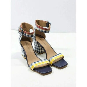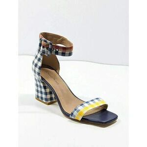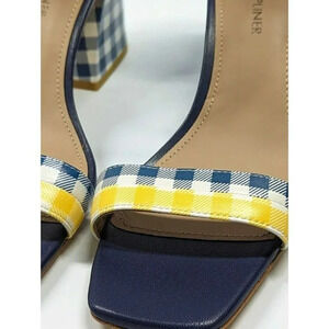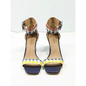 Donald Pliner Women's Watson Gingham-Print Leather Heel Sandal Size 9 MSRP $198