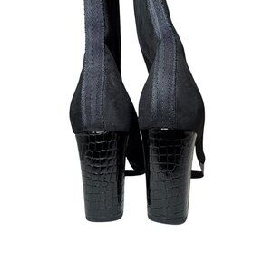 Donald Pliner Zari Boot Women's US 9 Black Almond Toe Block Heel Stretch NEW
