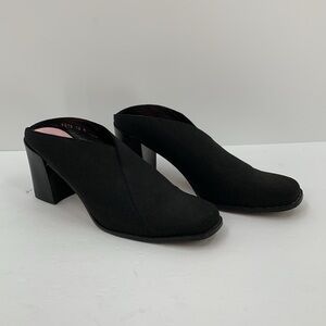 Donald Pliner slide mule black fabric block heel shoe square toe clog Y2K 10