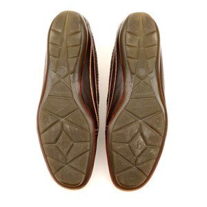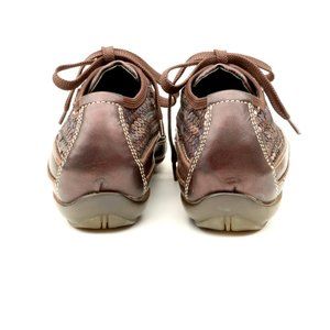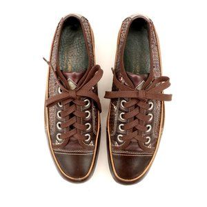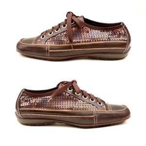 Fun and funky leather sneakers by Donald J. Pliner, made in the mountains of Italy. They are covered with coppery-colored sequins and have lace ties. Like new, they were barely worn. Please note the narrow width.
