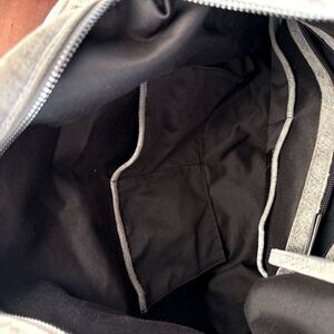 This is a very luxurious soft yet functional tote bag purse. Two generous size pockets in the front zippered. Four slip pockets inside in an inner zipper pocket. Attached keychain string. Shorter strap and a longer strap included. The longer strap is easily detachable.