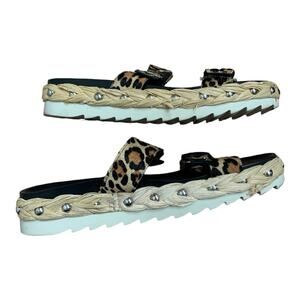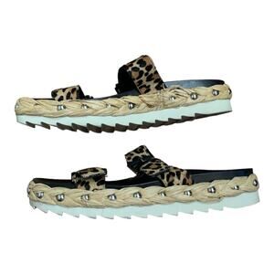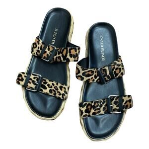 Donald Pliner womens 9 Larabee slide sandals leopard leather platform black stra