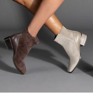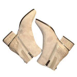 Donald Pliner Light Taupe Suede/Leather Ankle Booties,Side Zipper.Stock photo for reference only..Approx Heel Height 1.5