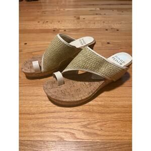 Donald Pliner's Gyer raffia woven cork wedge sandals size 8.5 slip on
