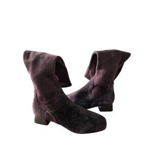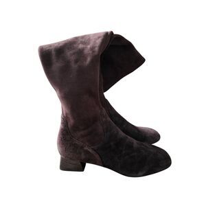 Donald Plinner Reginasu Dark Brown Stretch Suede Boots Size 9 Block Heel