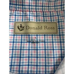 Stay cool and stylish on and off the course with this Donald Ross men's golf shirt in size L. Designed in a classic light blue and white plaid pattern, this polo is crafted from high-performance stretch fabric that offers moisture-wicking comfort and a polished look. Great for summer rounds, resort wear, or casual Fridays.