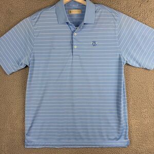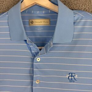 You are purchasing a Donald Ross Golf Polo Shirt Mens Large Blue Preppy Golfer Blowing Rock CC. It is gently pre-owned and in good shape with no visible issues observed other than some spots on the front - check out the pics for details.