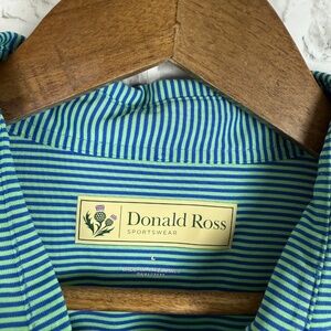 Donald Ross Light Green & Blue Striped Performance Golf Polo Mens LARGE Stretch