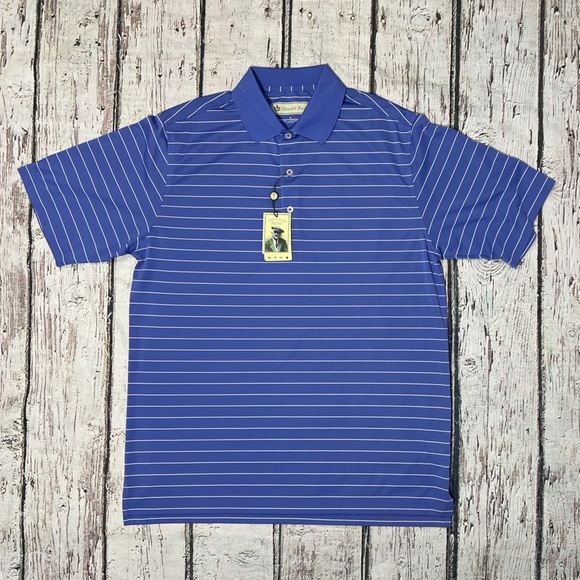 Donald Ross Men's Blue Striped Polo Shirt New Golf Golfer Shirt