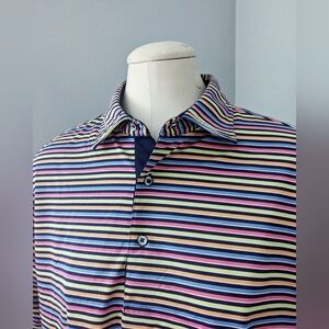 Donald Ross Performance Athletic Polo Shirt Golf Multicolor Striped Men's Medium