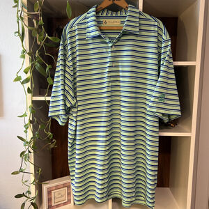 Donald Ross Polo Shirt Adult X-Large Green/Blue Striped Golf Golfing Rugby Mens