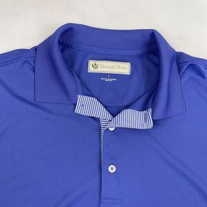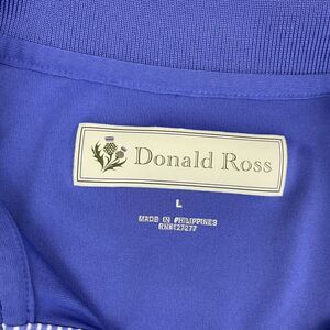This is a Donald Ross short sleeve polo shirt designed for men. It features a solid purple color with a striped collar and a spread collar style. The shirt is made of lightweight and stretchy polyester material that is suitable for all seasons and has moisture-wicking and breathable properties. The shirt is ideal for various occasions, including travel, activewear, party/cocktail, casual, and workwear. It is available in size L and is part of the Donald Ross product line. The shirt is perfect for golf enthusiasts and is made in the Philippines.
