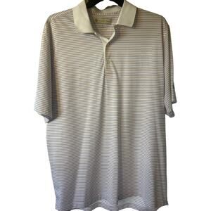 Donald Ross Sport Golf Polo Men's XL White Orange/Blue Stripe Bridge Mill Logo