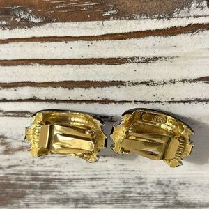 Donald Stannard VTG Black Gold Half Hoop Earrings Clip On Enamel Rhinestone
