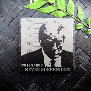 Donald Trump 2024 July 13 Assassination FIGHT Never Surrender Slate Coaster Set