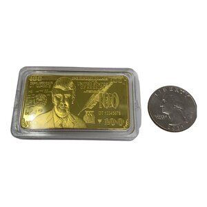 Donald Trump 24K Gold Foil Bullion $100 Dollar Art Bar US President Collectible
