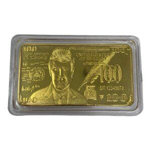 This exquisite Donald Trump gold foil art bar is a captivating addition to any collection. Crafted with 24K gold electroplate, it shines with a brilliance that reflects its historical significance. Ideal for collectors and enthusiasts, this item symbolizes a remarkable era in American history.