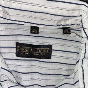 Donald Trump Sig Collection 15.5 34/35 White W/Blk Stripped Shirt French Cuff. Condition is Pre-owned - Good. Shipped with USPS Ground Advantage.