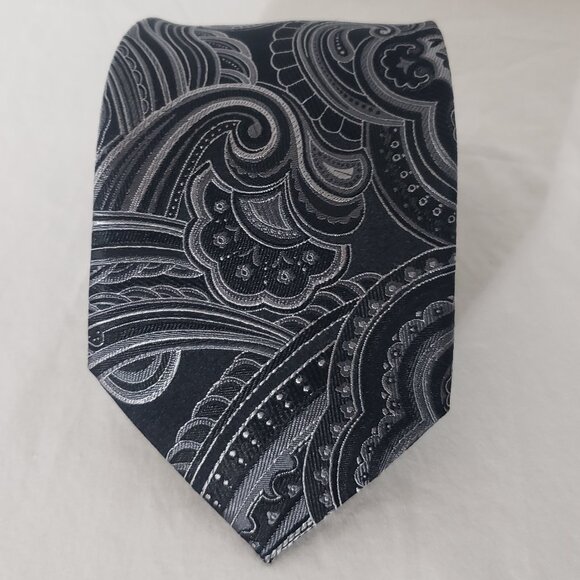 Donald Trump Signature Collection 100% Silk Necktie - Black Gray Paisley - 3 1/2" x 60"