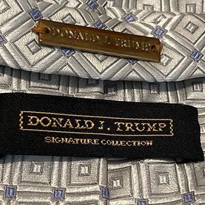 Donald Trump Signature Collection Men's Neck Tie Silver And Blue Square Pattern