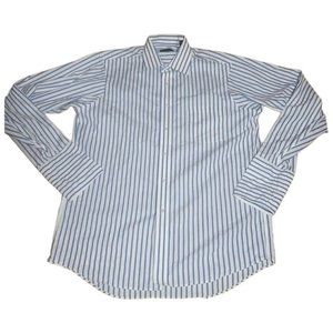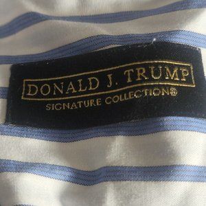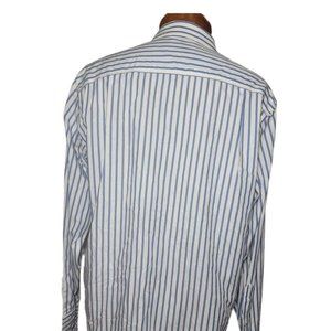 Donald Trump Signature Collection Striped Dress Shirt French Cuffs White Blue