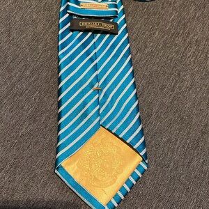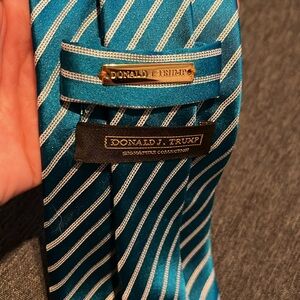 Donald Trump Signature Collection Teal White Diagonal Stripe Silk Tie