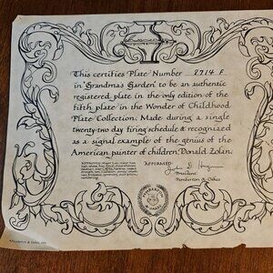 Donald Zolan Van Hygan & Smythe Inc. Grandma's Garden Collectors Plate 1986