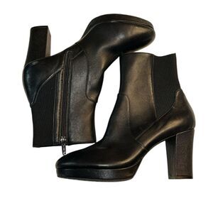 Donald J Pliner Black Platform Leather Boots,Zipper closure,Wrapped Block heel.NWOT