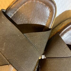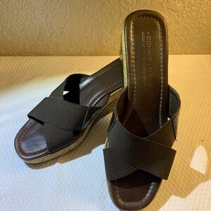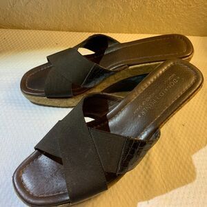 Donald J Pliner Brown Stretch Fabric Wedge Sandals