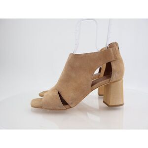 Donald J Pliner Perra Women 10M Shoes Tan Suede Slip On Zip Block Heel Sandals
